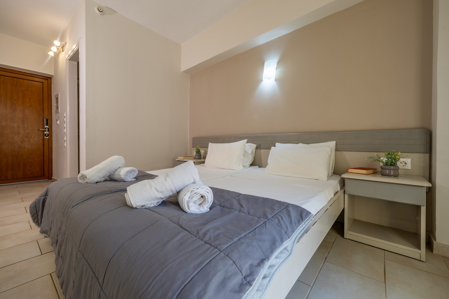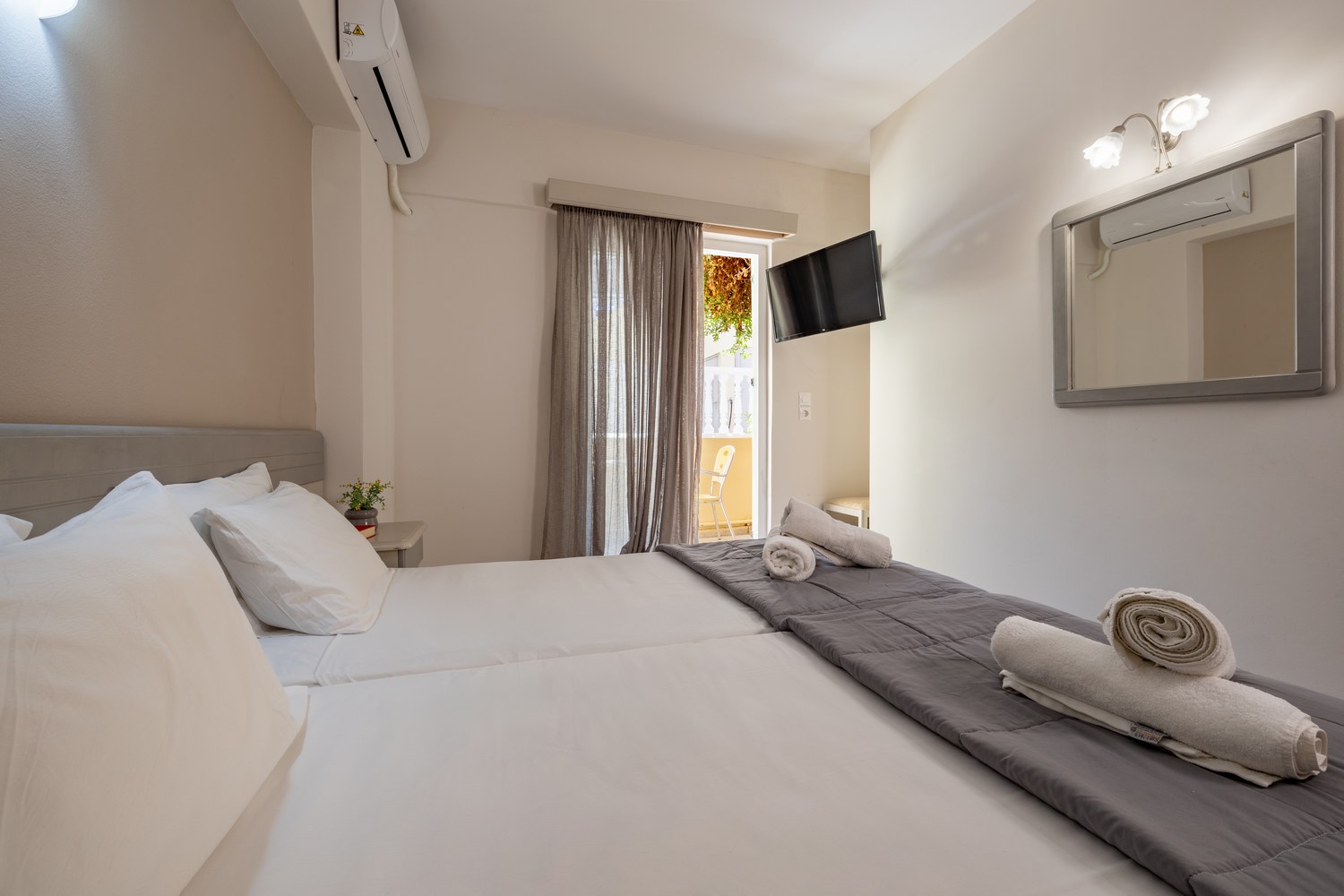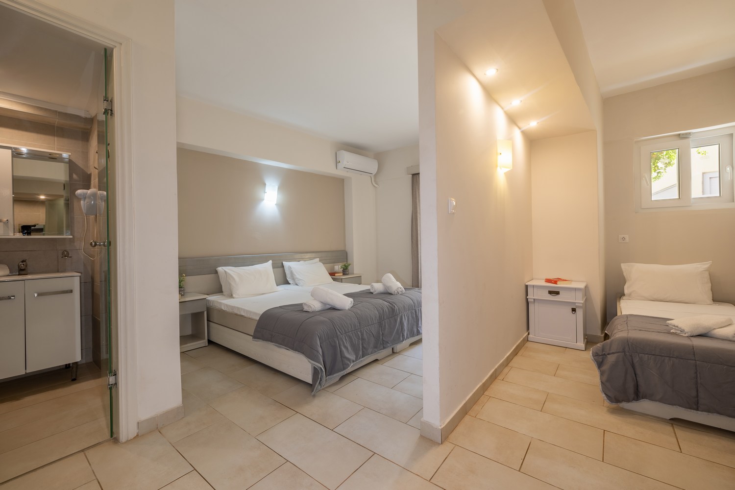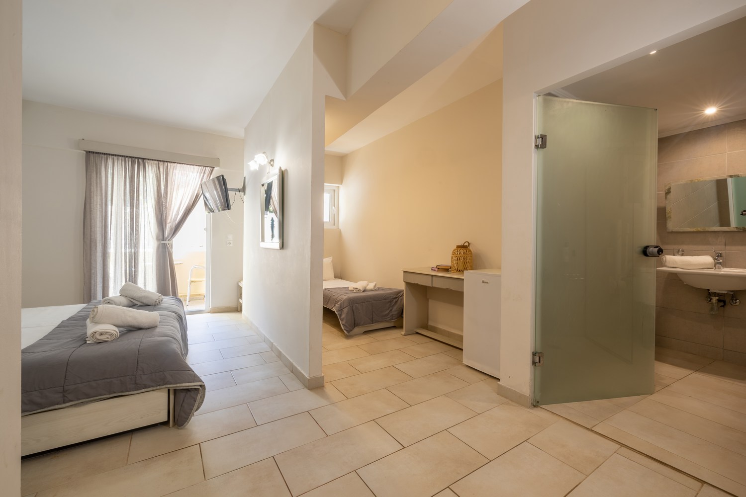 Spacious and welcoming, the Family Room – Lower Floor is designed to comfortably accommodate families looking for a relaxed and practical holiday experience. Located on the lower floors of the hotel, these rooms offer convenience and easy movement throughout the property. The room features a double bed and additional beds suitable for children, air conditioning, and a private balcony or terrace. Guests can enjoy essential amenities such as a TV, mini fridge, safety deposit box and a modern private bathroom with shower. An ideal choice for families who value comfort, functionality and carefree all-inclusive moments by the sea.