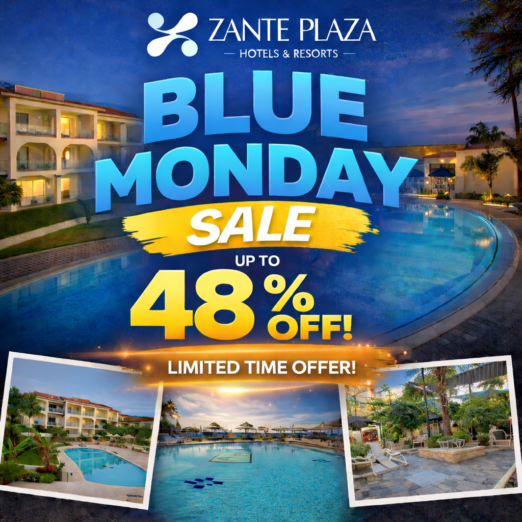 Winter doesn’t last forever — but this offer won’t either. Our Blue Monday Sale is your once-a-year chance to secure your summer escape to Zakynthos at exceptional early booking prices. Enjoy up to 48% OFF selected stays across Zante Plaza Hotels & Resorts and plan your next island getaway with unbeatable value.